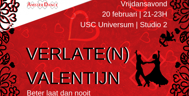 20 februari van 21:00 tot 23:00, Verlate(n) Valentijn Vrijdansen. Neem als lid gratis iemand mee!